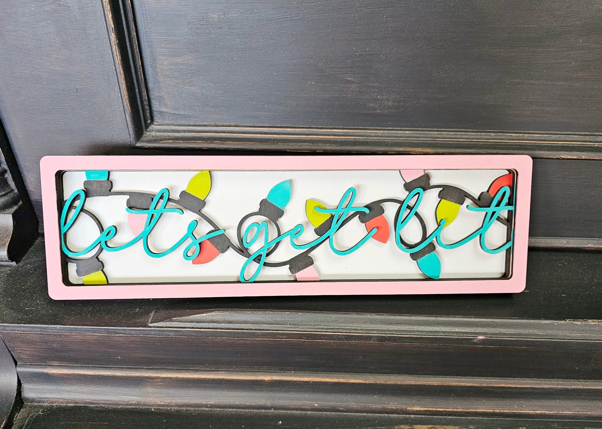 Bring some festive cheer to your home with our shelf sitter: Let's Get Lit! This shelf sitter showcases classic string of Christmas lights and the fun saying "Let's Get Lit". Brighten up your holiday decor and spread some holiday cheer with this unique piece.