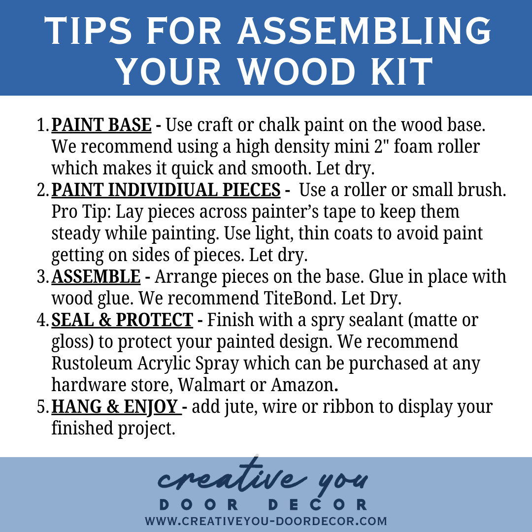 NOT INCLUDED | Paint, brushes, glue, hanging material, bow or greenery.